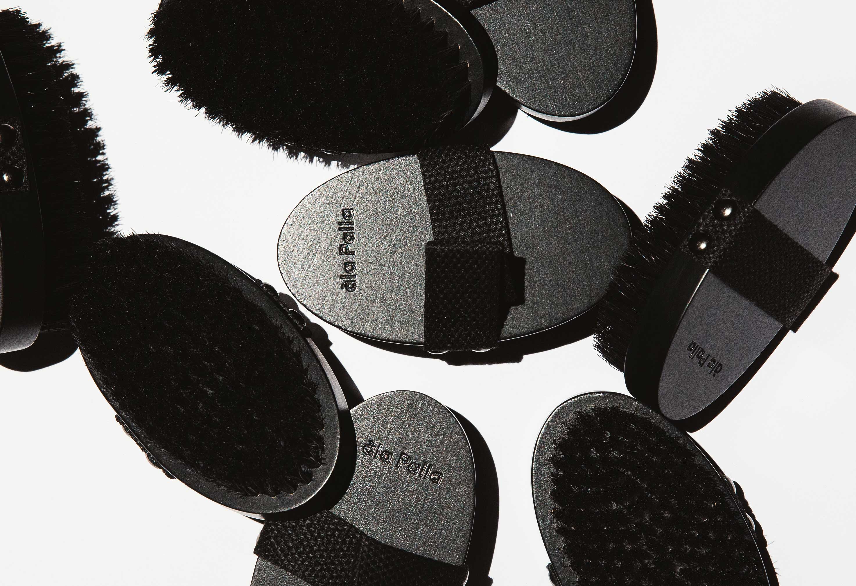 Bukové drevo, kančie štetiny, bavlnený pás, nerezové nity.